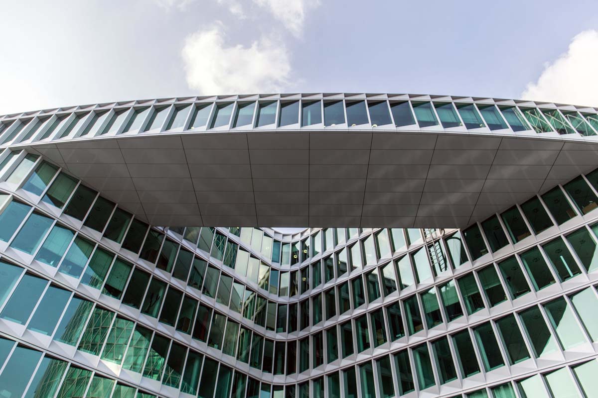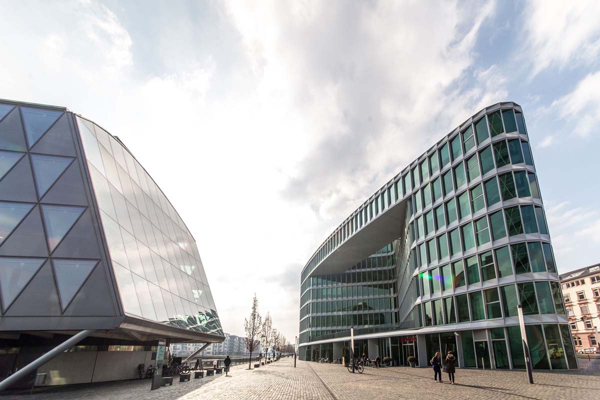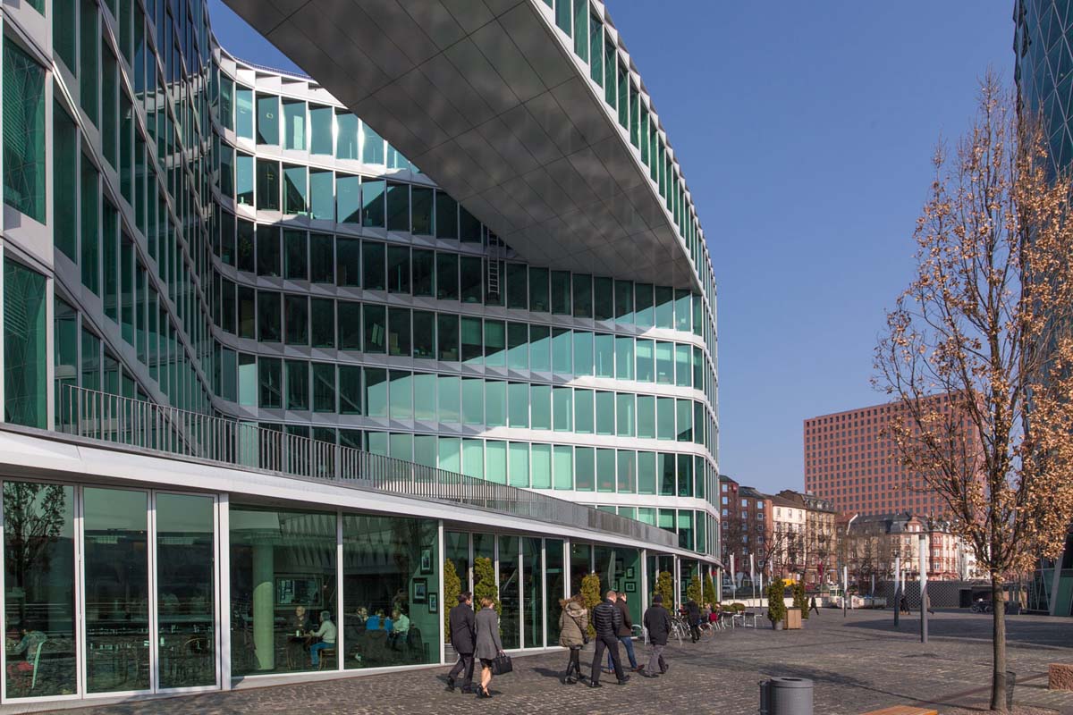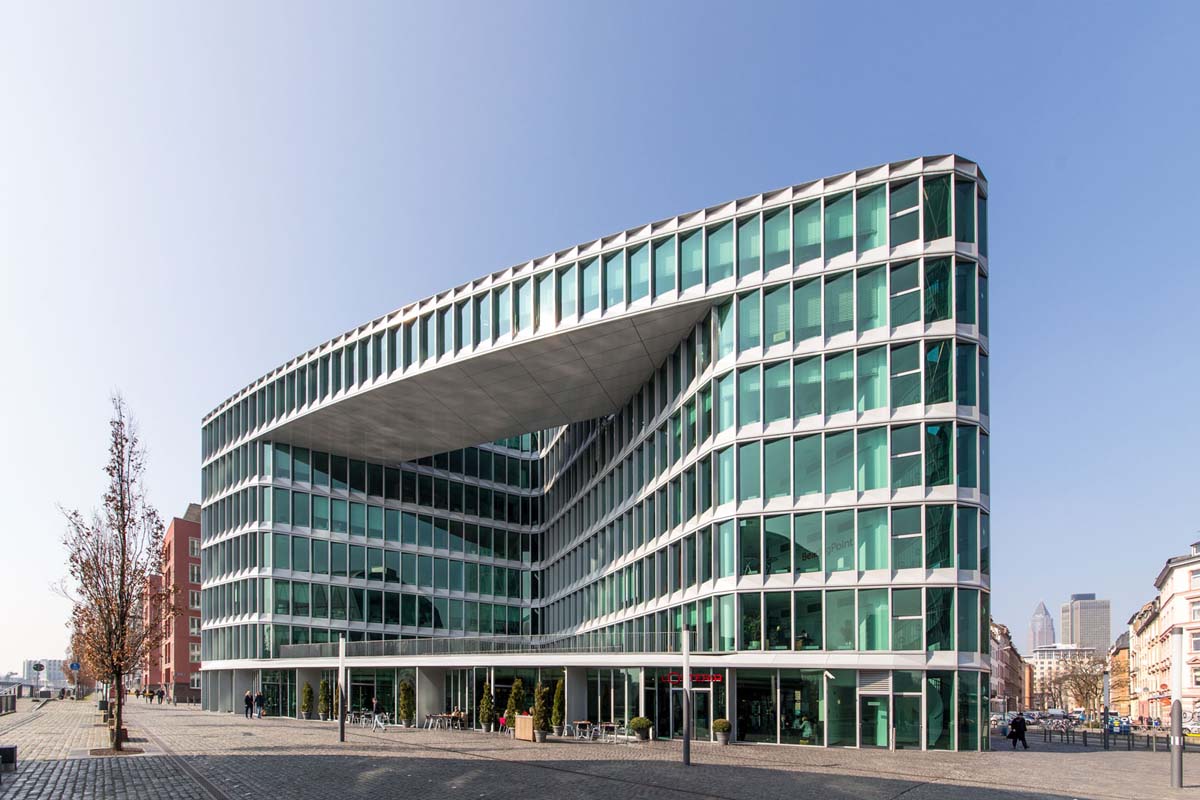 Westhafen House trokutastog je oblika, a tlocrt standardnog poda pruža promjenjiv poslovni prostor.